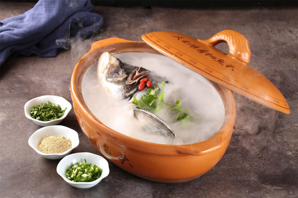 ① Local knowledge:The “Fish head in casserole” must be stewed with bighead carp from Tianmu Lake and pure lake water for 4 hours. Once the soup turns milky white, it should be served within 7 minutes; otherwise, the white soup will become clear.